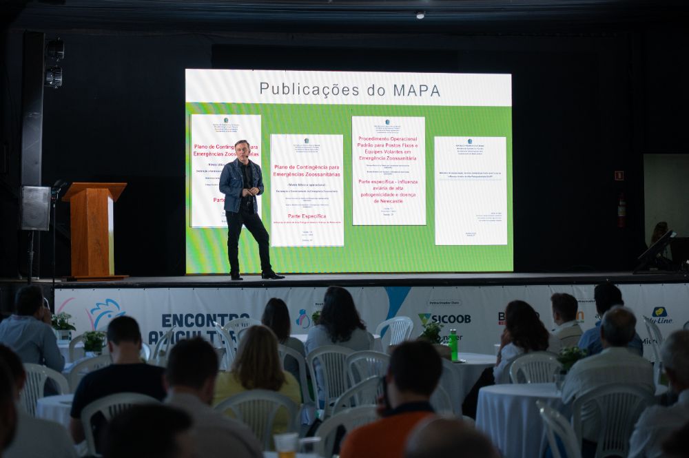O encontro também contou com palestras de alto nível ministradas pelos especialistas Bruno Pessamilio, que enfatizou detalhes sobre o plano de Contingência para Influenza Aviária, e Christian Lohbauer, que trouxe análises e tendências para o agro no contexto nacional e mundial. As apresentações foram momentos fundamentais de capacitação e reflexão sobre os desafios e oportunidades do setor.