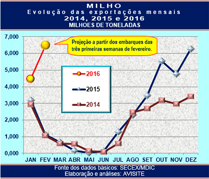 Mantida no restante do mês a média das três primeiras semanas, fevereiro será fechado com um novo recorde histórico – algo próximo dos 6,5 milhões de toneladas, quase 500% a mais que em fevereiro de 2015. Ou 150% a mais no primeiro bimestre de 2016.