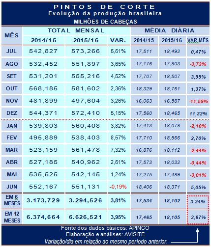 Pintos de corte: expansão de quase 4% no primeiro semestre de 2016
