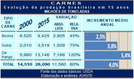 O que não ficou claro, pelo título, é que esse índice se refere apenas à carne bovina. Pois, consideradas apenas as três principais carnes produzidas no Brasil – bovina, suína e de frango – o incremento na produção foi bem superior, girando em torno dos 80%.